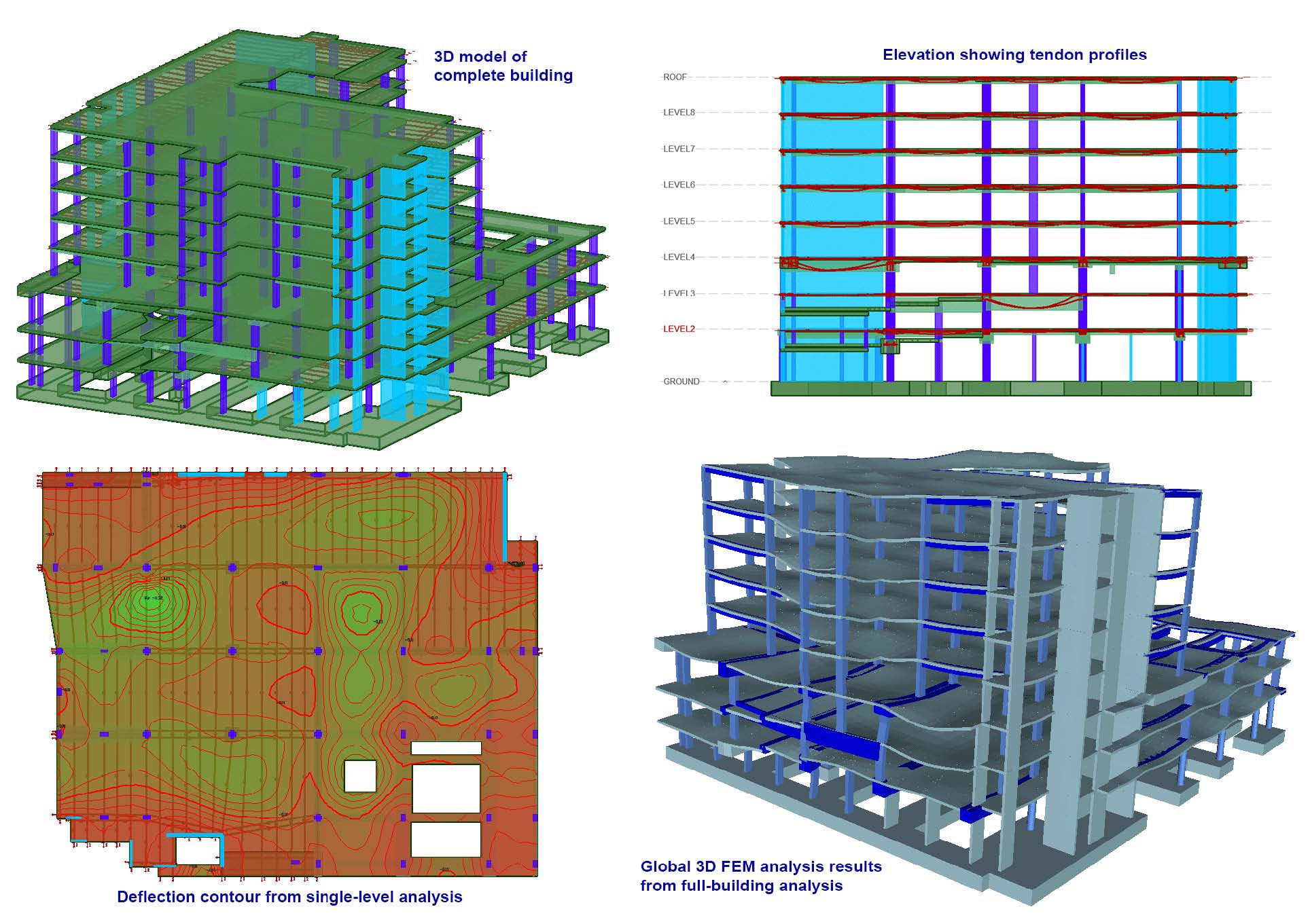 - Post-tensioned slabs: It incorporates the unique behavior of post-tensioned